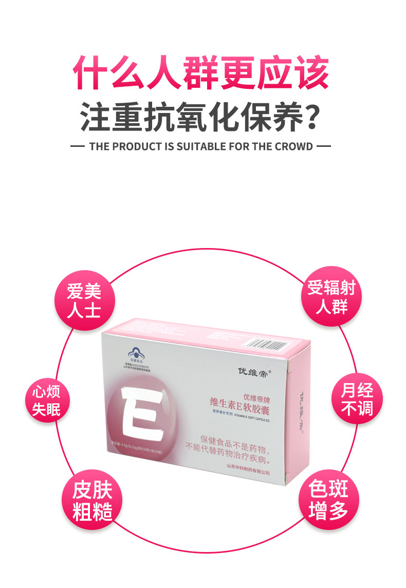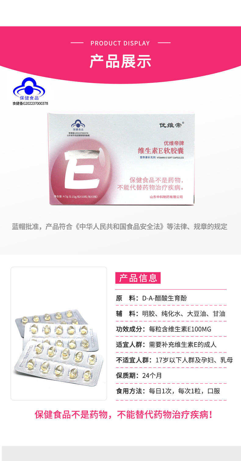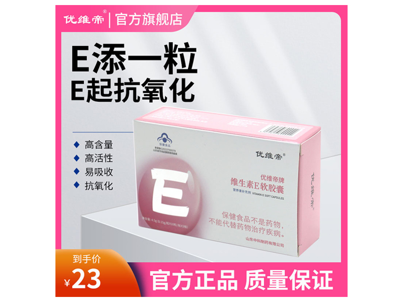 , createDate:2023-04-21 08:49:05.0, tagIdValue:, isHeadline:null, likes:0, image:/static/upload/abc9bdd5-c531-4af3-a5b5-69cf115c525d.jpg, modelFieldValue:{"gg":"0.15g/粒*30粒/盒","syz":"補充維生素E","jiage":"每粒含維生E 100mg","ssff":"口服","tymc":"優維帝牌維生素E軟膠囊","sslssff":"每日一次,每次一粒","pzwh":"食健備G202237000378"}, author:null, sort:null, isTop:null, subtitle:null, siteId:13, oppose:0, categoryId:1130, status:1}