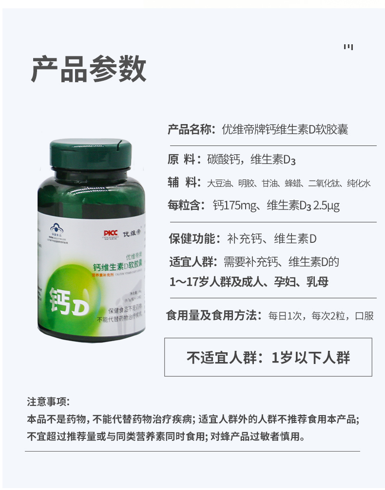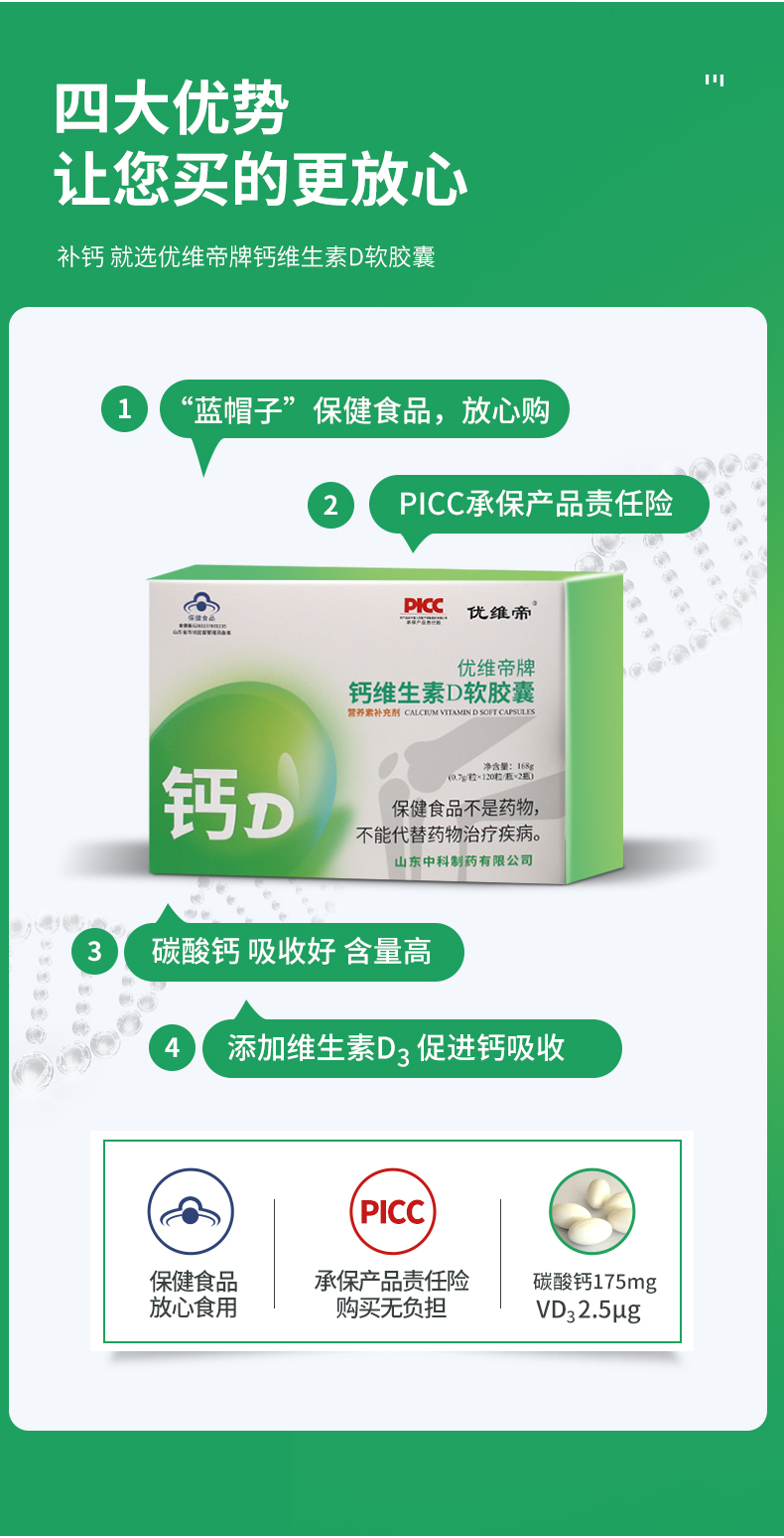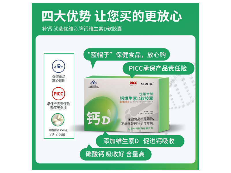 , createDate:2023-04-21 08:51:20.0, tagIdValue:, isHeadline:null, likes:0, image:/static/upload/9d0ffc12-cff7-47e7-9f5e-a77fa72940bc.jpg, modelFieldValue:{"gg":"0.7g/粒*120粒/瓶","syz":"補充鈣、維生素D","jiage":"每粒含鈣175mg、維生素D3 2.5ug","ssff":"口服","tymc":"優維帝牌鈣維生素D軟膠囊","sslssff":"每日1次,每次2粒","pzwh":"食健備G202237001335"}, author:null, sort:null, isTop:null, subtitle:null, siteId:13, oppose:0, categoryId:1130, status:1}